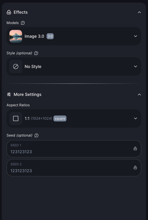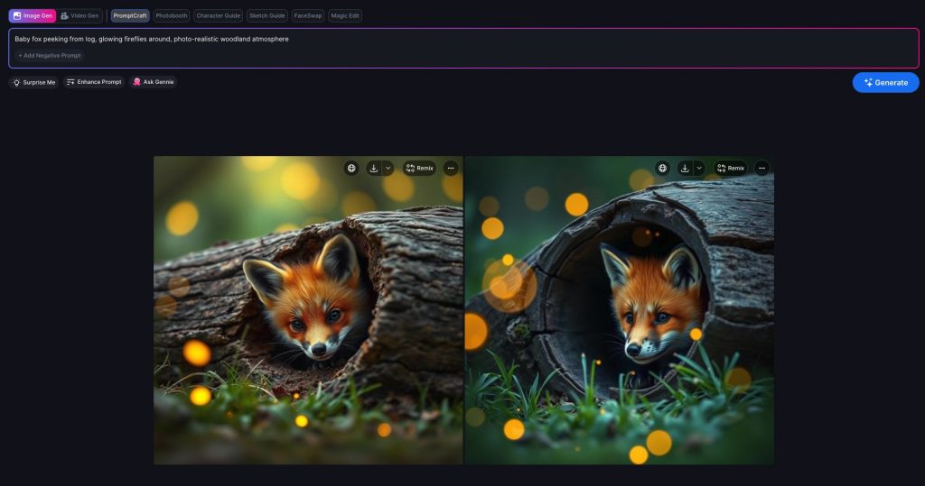 The generation results screen has also been overhauled – now, both creations are directly shown side-by-side. Users can view and compare the two creations without hopping back and forth between results. Additionally, users can continue to generate straight from the results screen – feature selection, prompt input, and generation settings are available even while viewing results. This makes it easier than ever to iteratively improve a prompt or output, or just to regenerate with a new seed.