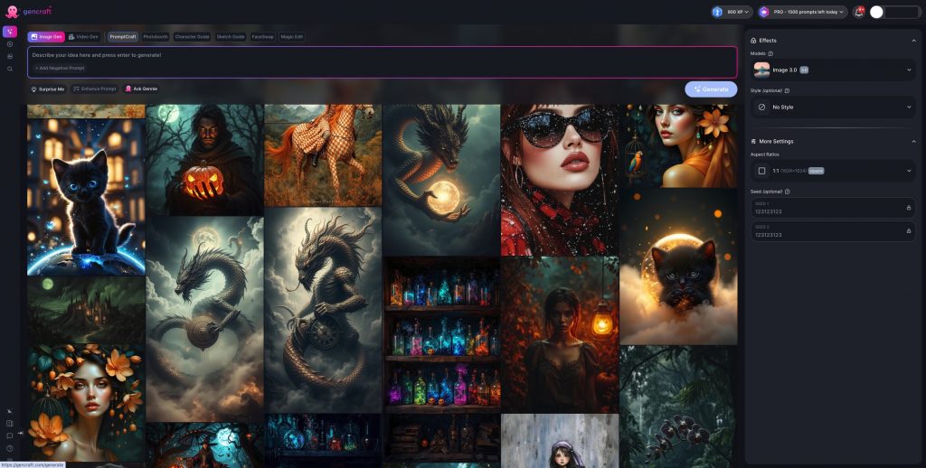 The new generation screen has all the various generation settings and configurations (model, style, aspect ratio, etc.) in one place: the right panel. Model and style selection have consistent UX as well. Features like Photobooth, Magic Edit, and Animate are now much easier to access and switch between.