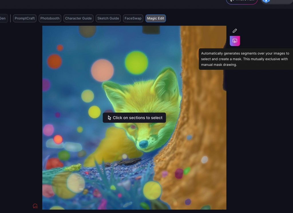 Auto-Segment your image if you prefer not to draw the mask manually. This feature automatically breaks your image into logical sections. Simply click on the sections you want to edit, and theyâll turn blue.