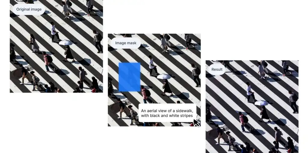 - In the prompt box, describe what youâd like to see in place of the object, such as, âAn aerial view of a sidewalk, with black and white stripes.â