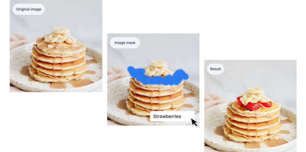 - Keep your prompts consistent with the original prompt, and as detailed as possible. Specific instructions that are related to the original prompt like âStrawberries on a stack of pancakes with bananas on topâ yield better results.